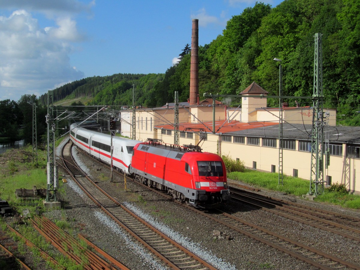 Hier 402 038-4 "Saarbrücken" als ICE845 von Köln/Bonn Flughafen nach Berlin Ostbahnhof mit 402 035-0 "Görlitz" als ICE855 von Köln Hbf. nach Berlin Ostbahnhof, bei der Ausfahrt am 18.5.2013 aus Berlin Ostbahnhof, in Richtung Berlin Rummelsburg. Alexander