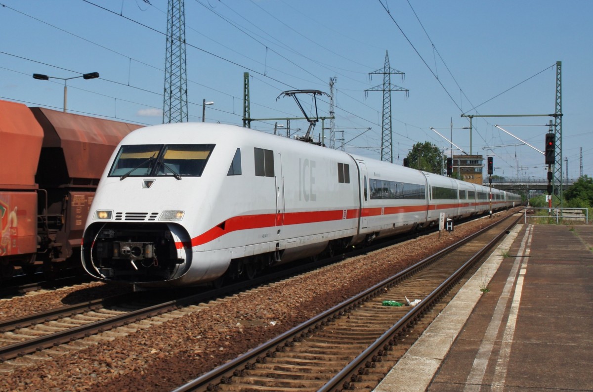 Nachschuss auf 402 035-0 "Görlitz", als dieser am Abend des 18.07.2019 zusammen mit 402 017-8 "Bergen auf Rügen" von Maschen kommend in den Bahnhof von Hamburg Harburg auf Gleis 2 fuhr. Tobias Schmidt