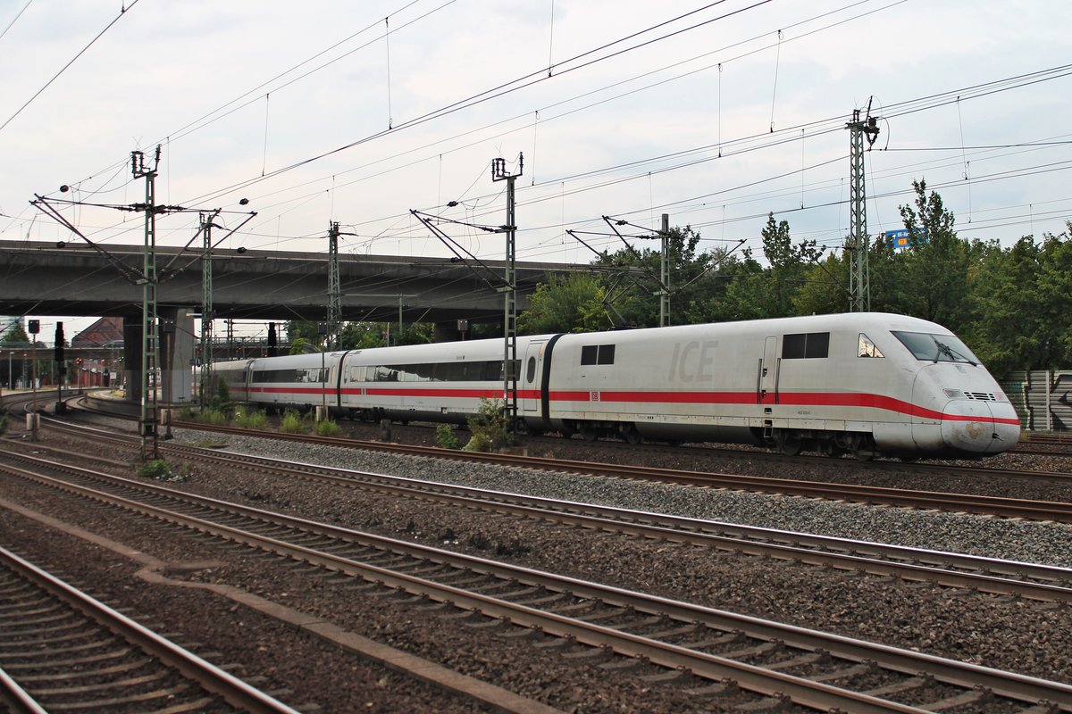 Hier 402 043-4 "Bautzen/Budy¨in" als Leerzug von Berlin Rummelsburg nach Berlin Hbf.(tief) mit 402 035-0 "Görlitz" als Leerzug von Berlin Rummelsburg nach Berlin Hbf.(tief), bei der Durchfahrt am 6.7.2103 durch Berlin Schönefeld Flughafen, in Richtung Genshagener Heide. Alexander