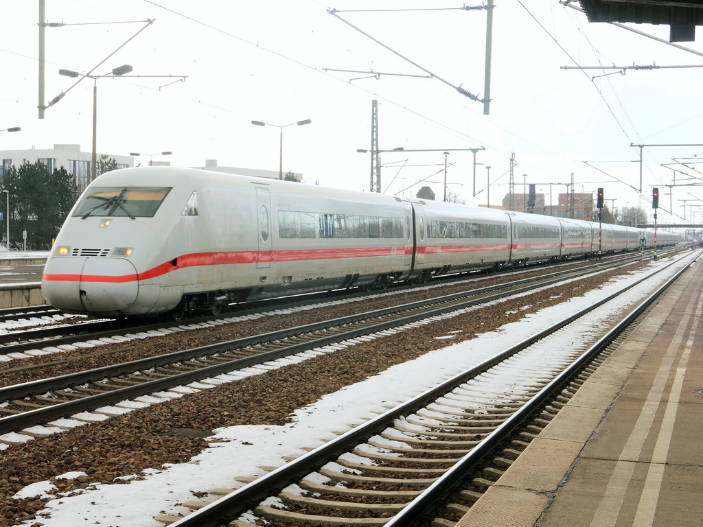 Hier 402 036-8 "Jüterbog" als ICE640 von Berlin Ostbahnhof nach Düsseldorf Hbf. mit 402 010-3 "Fontanestadt Neuruppin" als ICE650 von Berlin Ostbahnhof nach Köln Hbf., bei der Einfahrt am 10.3.2013 in Berlin Hbf. Alexander