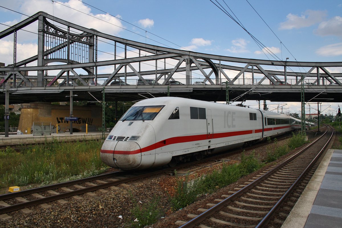 402 009-5 "Riesa" verlässt am 31.7.2016 als ICE857 von Köln Hauptbahnhof mit 402 036-8 "Jüterbog" als ICE847 von Düsseldorf Hauptbahnhof nach Berlin Gesundbrunnen den Endbahnhof und macht sich auf den Weg ins BW nach Berlin Rummelsburg. Alexander