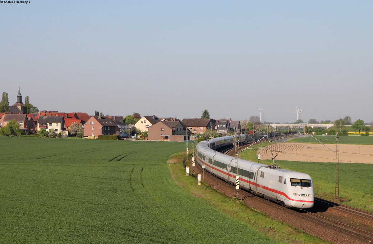 Nachschuss auf 402 036-8 "Jüterbog", als dieser am späten Nachmittag des 19.05.2020 als ICE 371 (Berlin Ostbahnhof - Basel Bad Bf) nördlich von Hügelheim über die Rheintalbahn durchs Markgräflerland in Richtung Schweiz fuhr. Tobias Schmidt