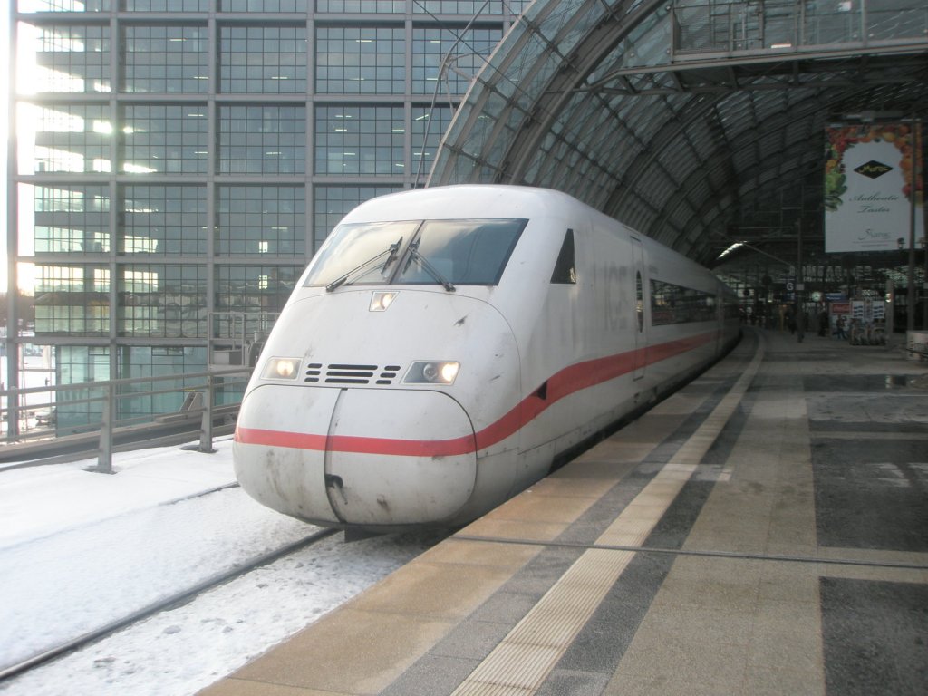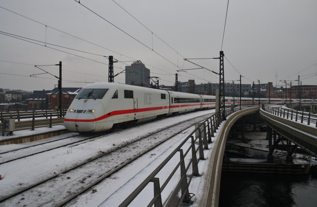 Hier 808 044-2 "Koblenz" und 402 038-4 "Saarbrücken" als ein ICE10 von Köln/Bonn Flughafen und Köln Hbf. nach Berlin Ostbahnhof, bei der Ausfahrt am 3.2.2010 aus Berlin Hbf. Alexander