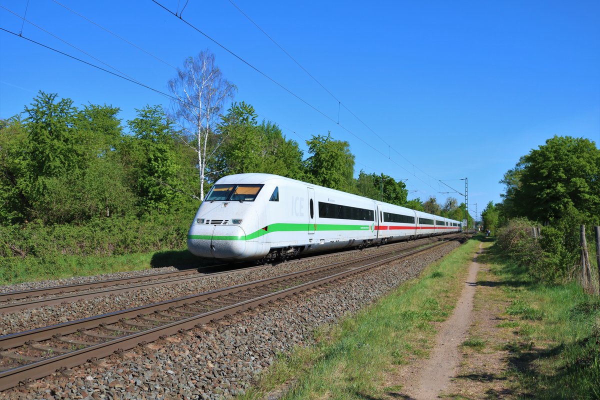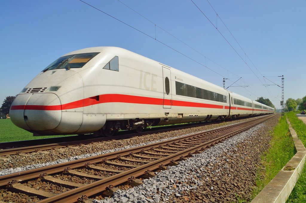 Hier 402 040-0 "Bochum" als ICE543 von Köln Hbf. nach Berlin Hbf.(tief) mit 402 038-4 "Saarbrücken" als ICE553 von Koblenz Hbf. nach Berlin Hbf(tief), bei der Durchfahrt am 27.4.2013 durch Berlin Schönefeld Flughafen, in Richtung Berlin Grünauer Kreuz. Alexander