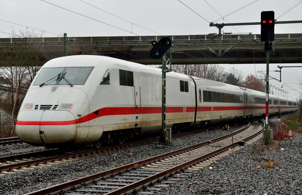 Hier 402 038-4 "Saarbrücken" als ICE940 von Berlin Ostbahnhof nach Köln/Bonn Flughafen mit 808 010-3 "Fontanestadt Neuruppin" als ICE950 von Berlin Ostbahnhof nach Köln Hbf., bei der Einfahrt am 15.12.2012 in Berlin Hbf. Alexander