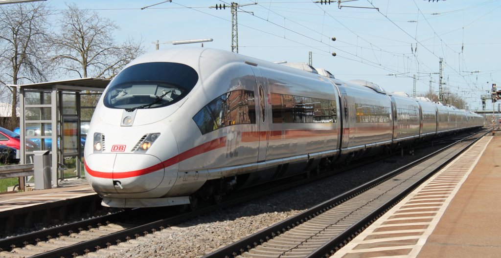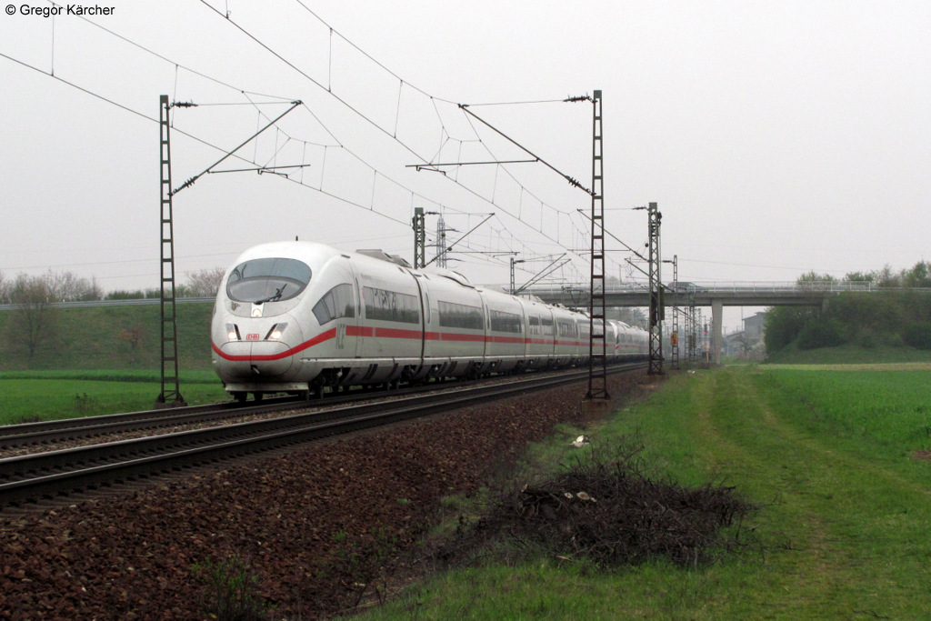 403 033-4 "Esslingen am Neckar" als ICE 209 bei Blankenloch. Aufgenommen am 21.03.2012. Interessanterweise hatte der Triebzug den vorderen Stromabnehmer oben. Gregor Kaercher
