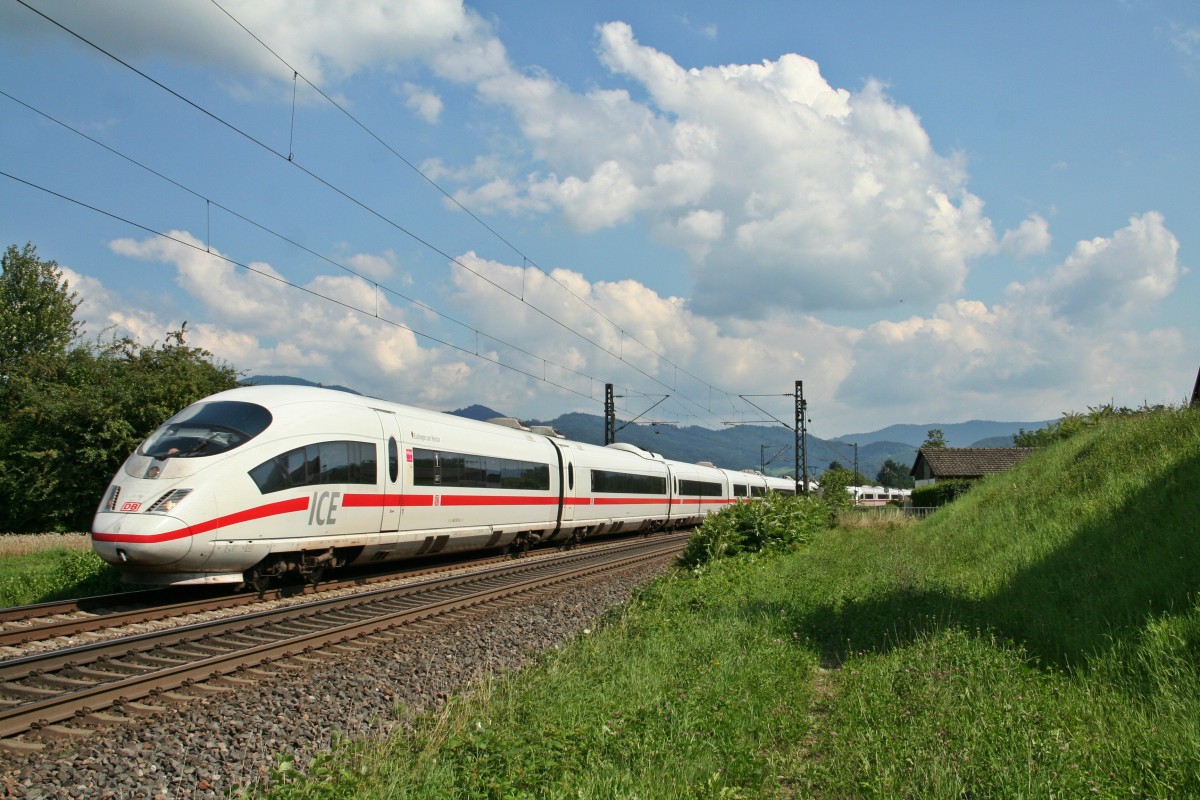 406 003-4 und 403 033-4 als ICE 104/504 auf dem Weg von Basel SBB nach Amsterdamm Centraal und Köln Hbf am Nachmittag des 01.08.14 nördlich von Kollmarsreute. Maximilian Grieger