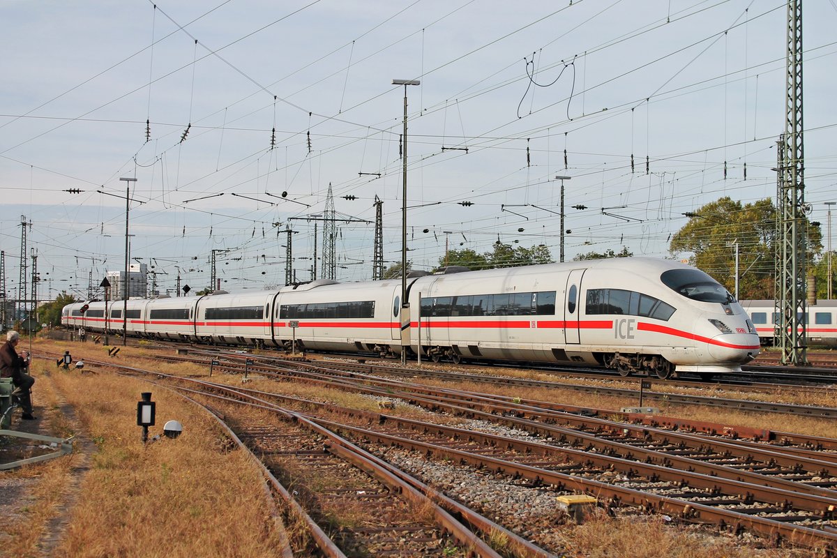 Einfahrt am 04.10.2017 von 403 528-3 "Aachen" zusammen mit 406 511-6 (4611) "Düsseldorf" als ICE ___ (Köln Hbf - Basel SBB) in den Badischen Bahnhof von Basel. (Fotostandpunkt von öffentlich zugänglichen Parkplatz) Tobias Schmidt