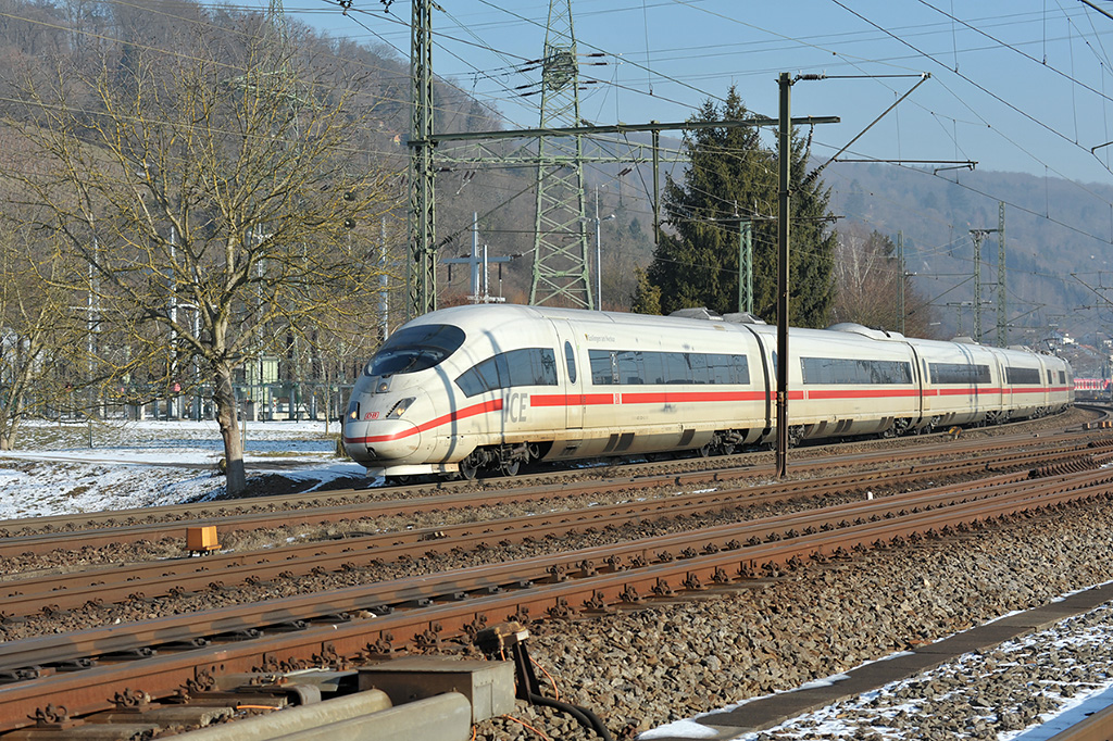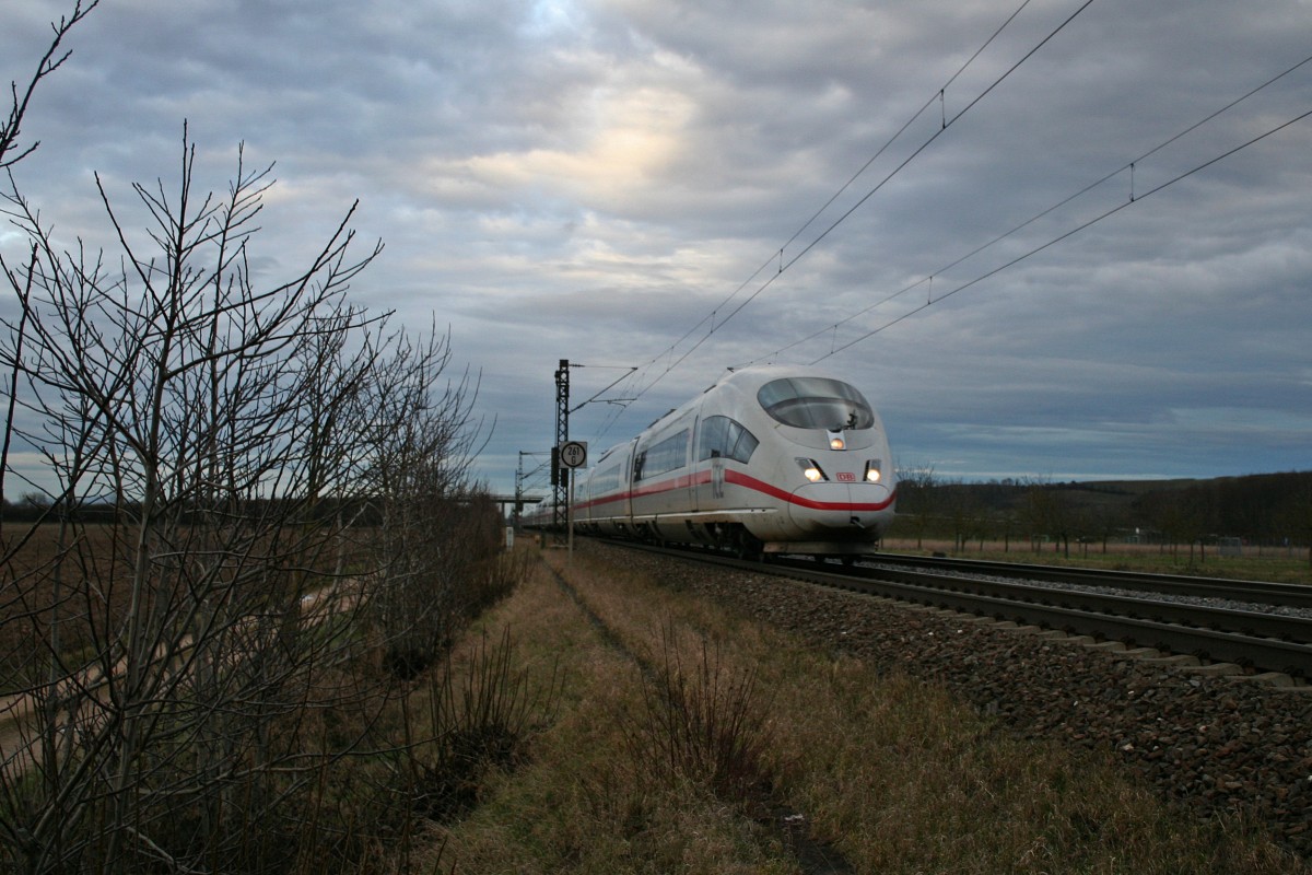 403 533-3 als ICE 107 von Dortmund Hbf nach Basel SBB am Nachmittag des 06.01.14 bei Hügelheim.