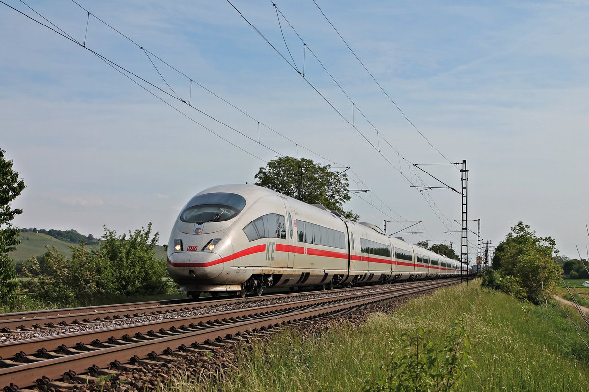 Nachschuss auf 403 533-3  Esslingen am Neckar  und 403 009-4  Aalen  am 12.05.2015, als sie als ICE ___ (Basel SBB - Köln Hbf/Dortmund Hbf) auf dem Weg zum nächsten Zwischenhalt in Freiburg (Brsg) Hbf waren.