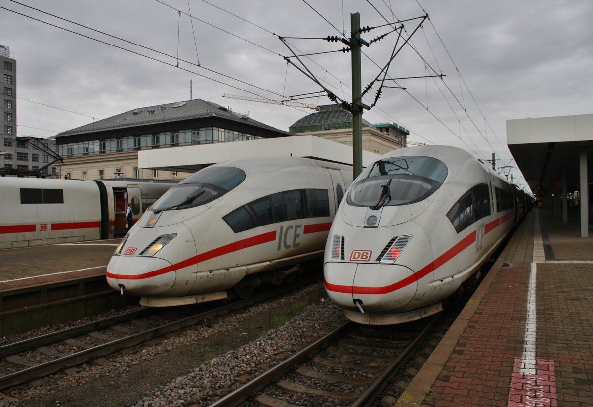 403 530-9 "Göttingen" trifft am 27.12.2017 als ICE518 von München Hauptbahnhof nach Dortmund Hauptbahnhof im Mannheimer Hauptbahnhof auf 403 561-4 "Celle" als ICE107 von Köln Hauptbahnhof nach Basel SBB. Alexander