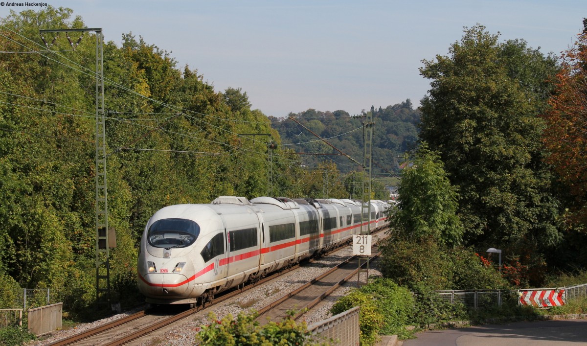 Am 31.10.2014 fuhr 406 054-7 als ICE 105 (Amsterdam Centraal - Basel SBB) zusammen mit 403 024-3 "Fürth" als ICE 505 (Köln Hbf - Basel SBB) bei Hügelheim ihrem vorletzten Zwischenhalt in Basel Bad Bf entgegen. Tobias Schmidt