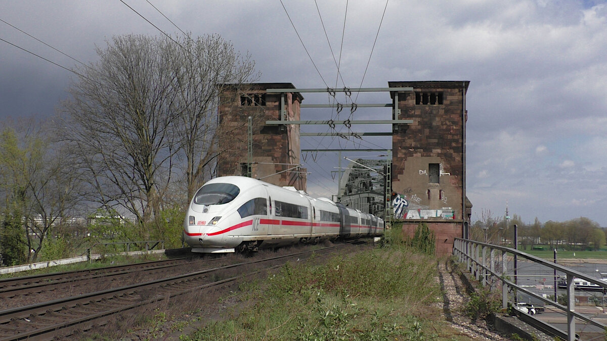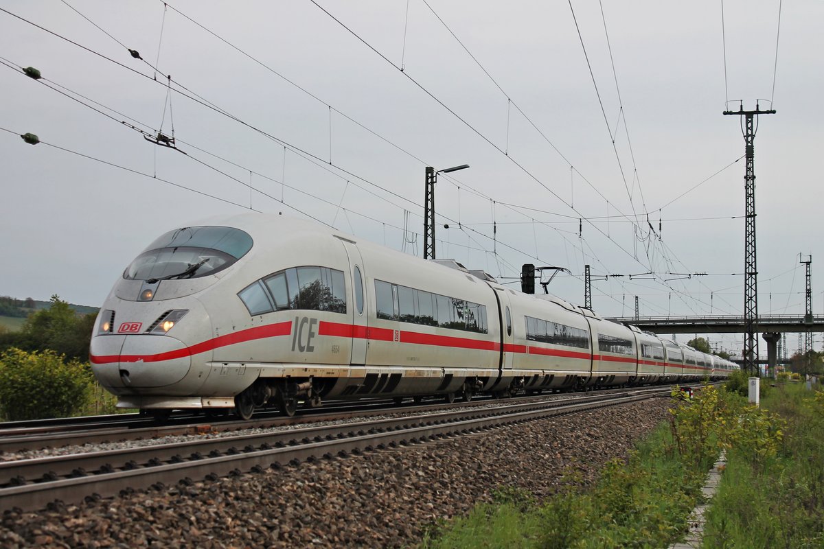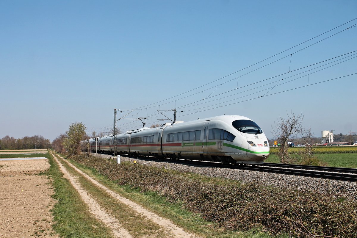 Als ICE 105 (Amsterdam Centraal - Basel Bad Bf) fuhr am frühen Nachmittag des 02.04.2020 der 406 054-7 (4654) südlich von Buggingen über die KBS 702 durchs Rheintal in Richtung Müllheim (Baden). Tobias Schmidt