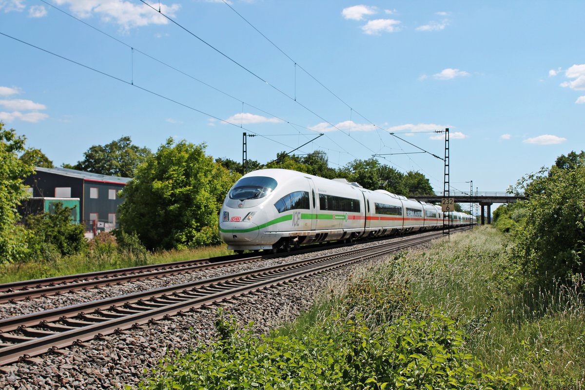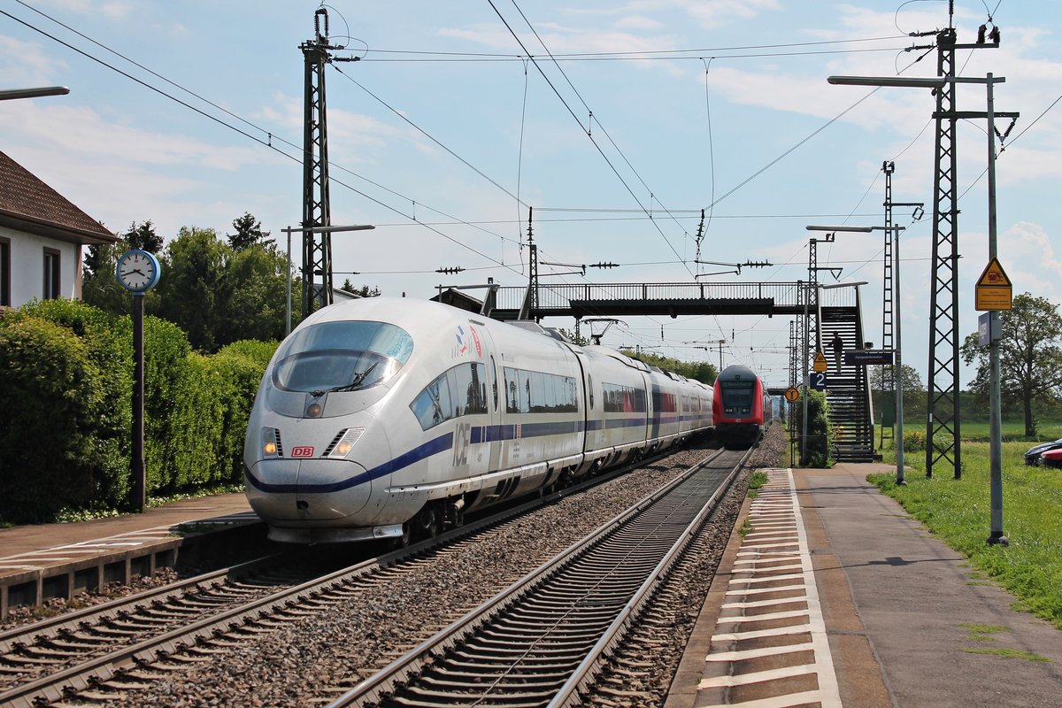 Durchfahrt am Mittag des 25.05.2019 von 406 054-7 (4654) als ICE 105 (Amsterdam CS - Basel SBB) zusammen mit 406 001-8 (4601) "Europa/Europe" als ICE 505 (Köln Hbf - Basel SBB) durch den Haltepunkt von Auggen über die RHeintalbahn in Richtung Schweiz. Tobias Schmidt