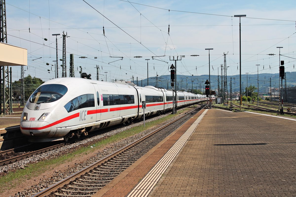 Am Nachmittag des 07.05.2019 fuhr 406 054-7 (4654) zusammen mit 403 513-5 "Treuchtlingen" als ICE ___ (Basel SBB - Köln Hbf) durch die Gleisanlagen vom Bahnhof Müllheim (Baden) in Richtung Freiburg (Breisgau). Tobias Schmidt