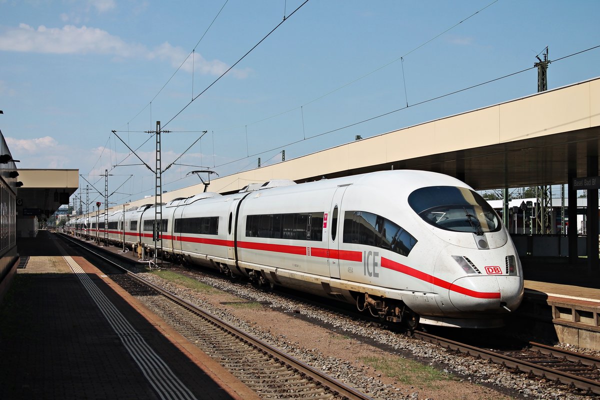 Nachschuss am 06.08.2015 auf 406 054-7 (4654) als dieser als ICE 104 (Basel SBB - Amsterdam Centraal) zusammen mit 406 510-8 (4610) "Frankfurt am Main" als ICE 504 (Basel SBB - Köln Hbf) an den Bahnsteig von Basel Bad Bf rollten. Tobias Schmidt