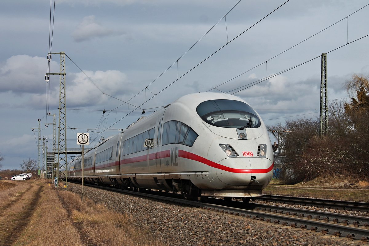 Am Nachmittag des 09.02.2019 fuhr 406 084-4 (4684) "Forbach-Lorraine" als ICE 105 (Amsterdam CS - Basel SBB) zusammen mit 406 511-6 (4611) "Düsseldorf" als ICE 505 (Köln Hbf - Basel SBB) bei Auggen über die Rheintalbahn in Richtung Schweizer Grenze. Tobias Schmidt