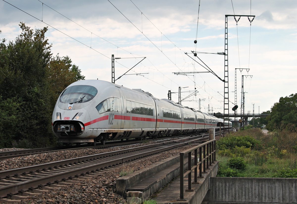 Am Nachmittag des 04.09.2018 fuhr 406 584-3 (4684) "Forbach-Lorraine" als ICE 504 (Basel SBB - Köln Hbf) zusammen mit 406 580-1 (4680) "Würzburg" als ICE 104 (Basel SBB - Amsterdam CS) nördlich von Müllheim (Baden) in Richtung Freiburg (Breisgau). Tobias Schmidt