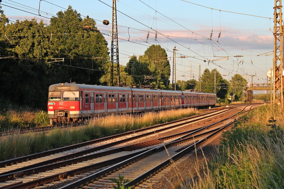 420 810-4 als S8 nach Wiesbaden Hbf am Abend des 21.06.13 bei der Einfahrt in Mainz-Bischofsheim.