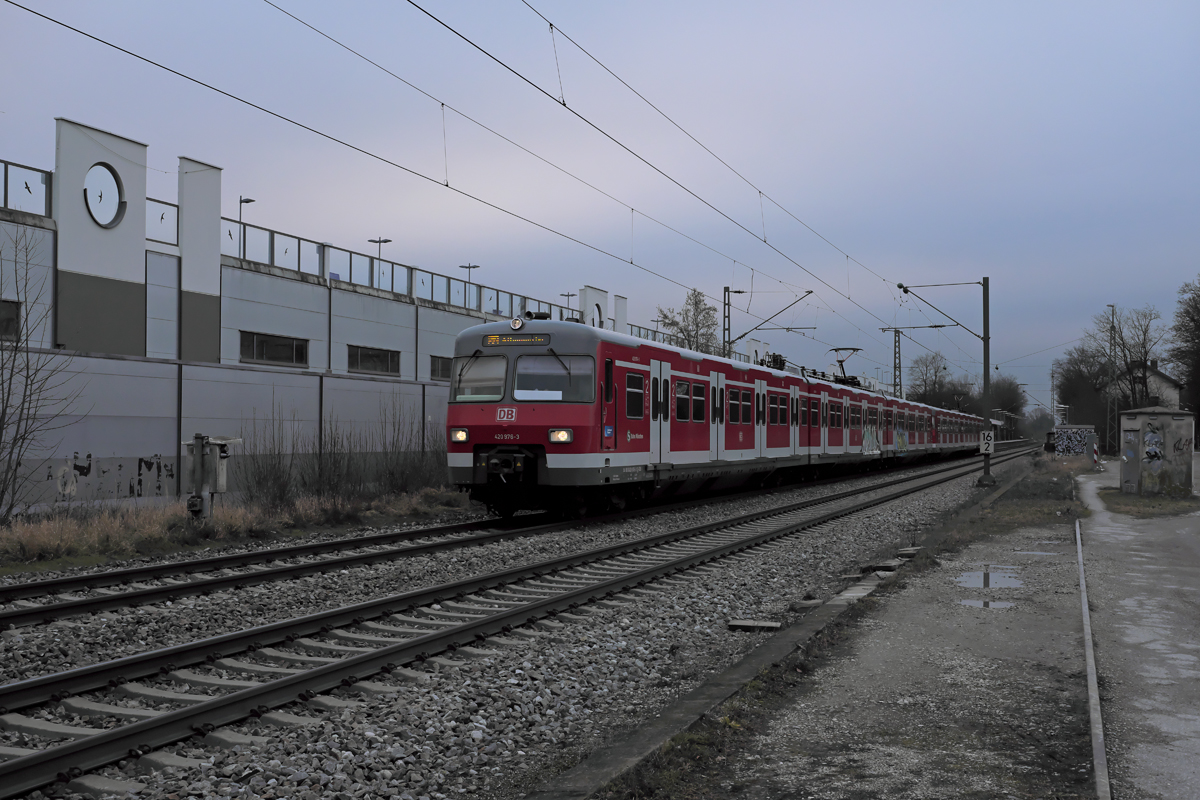 In Süddeutschland kann man zu Heiligabend 2017 tatsächlich die Sonne genießen. Somit wurde am frühen Nachmittag ein Bild des leider etwas grafitty-beschmierten 420 976-3 als S2 nach Petershausen angefertigt.