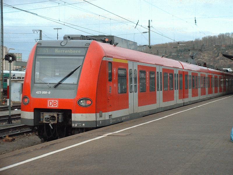 423 009-0 am 24.01.2002 im Bahnhof Herrenberg, Strecke S 1 Herrenberg - Stuttgart - Plochingen