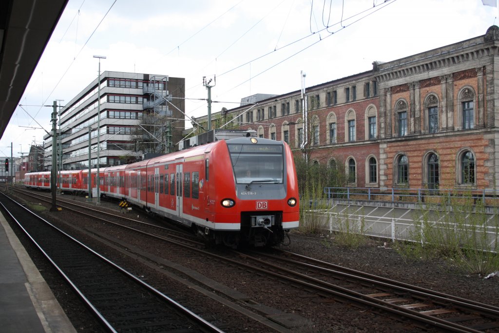 424 516-3, am 12.04.2011 in Hannover HBF bei der Bereitungstellung als S4 nach Bennemühlen.