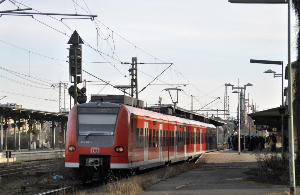 424 516-3, am 17.02.2011 in Hannover/Bismarkstraße. Wegen eines Polizei einsatzes fuhr die S-Bahn nur bis Hannover/Messe Laatzen.