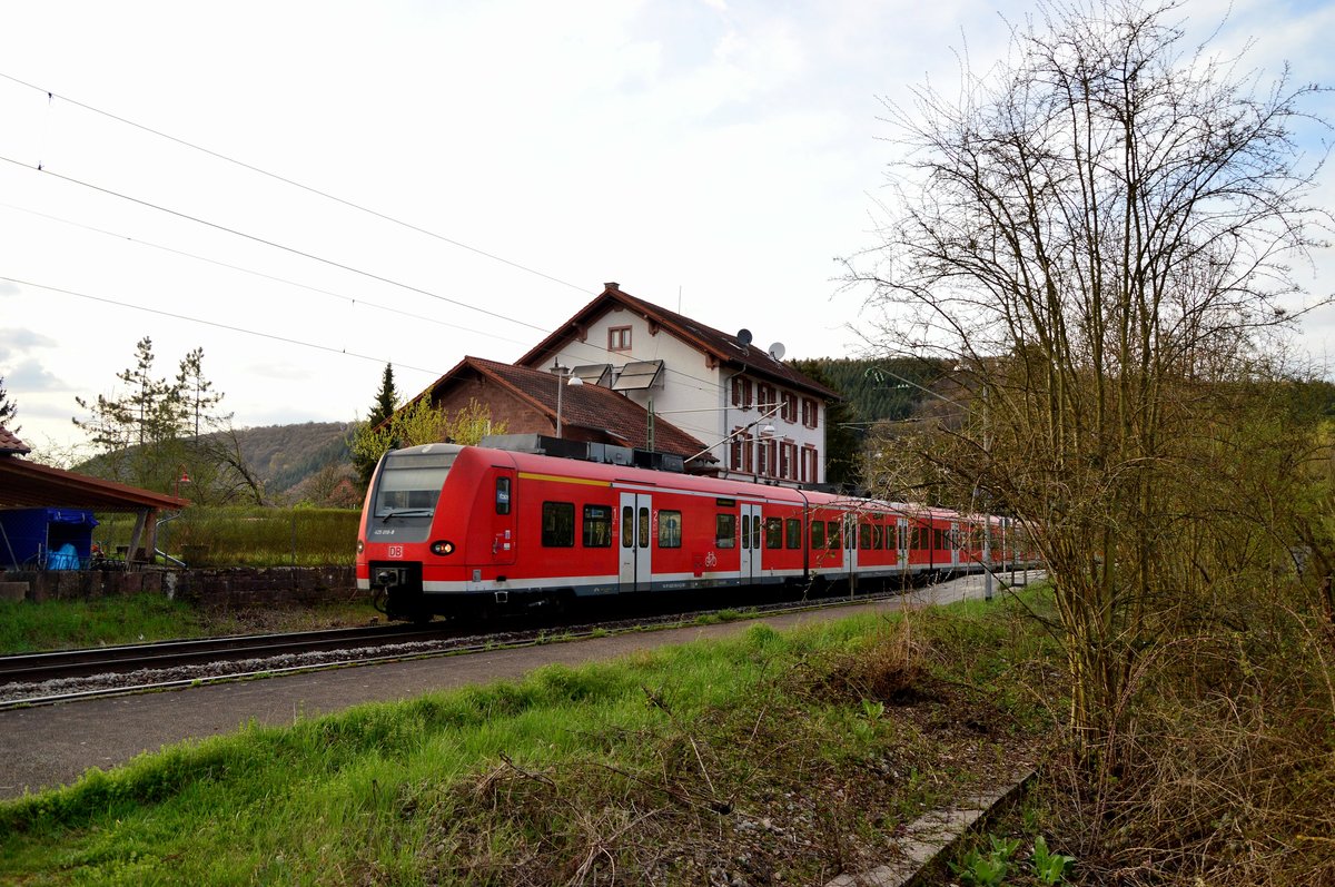 quasi ein Hüftschuss wegen unverhofft kommt oft, hier führt der 425 018-9 einen RE nach Stuttgart und ich habe ihn vom Magaretenschluchtweg aus gerade noch so ablichten können.