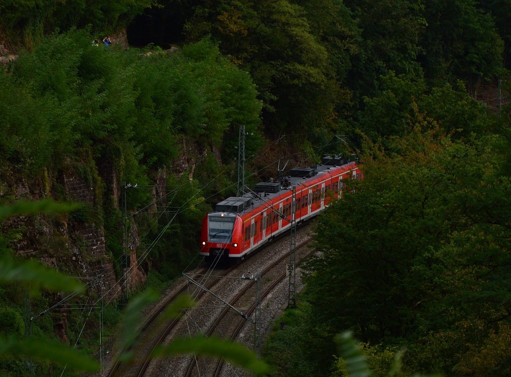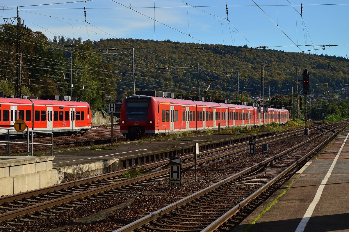 Als S1 in Richtung Homburg Saar kommt hier der 425 217-7 aus Binau gen Neckargerach gefahren.....das Foto machte ich vom Weg zur Magarethenschlucht aus. Freitag 21.9.2012 Andreas Strobel
