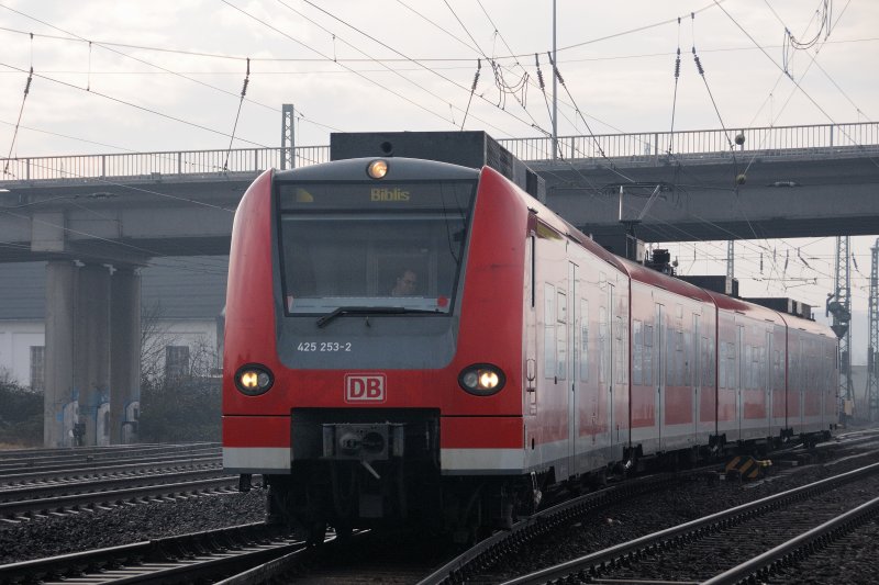 Der Kutscher kennt den Weg: Biblis ist die nächste und gleichzeitig Endstation für 425 253-2. (Feb. 2009)