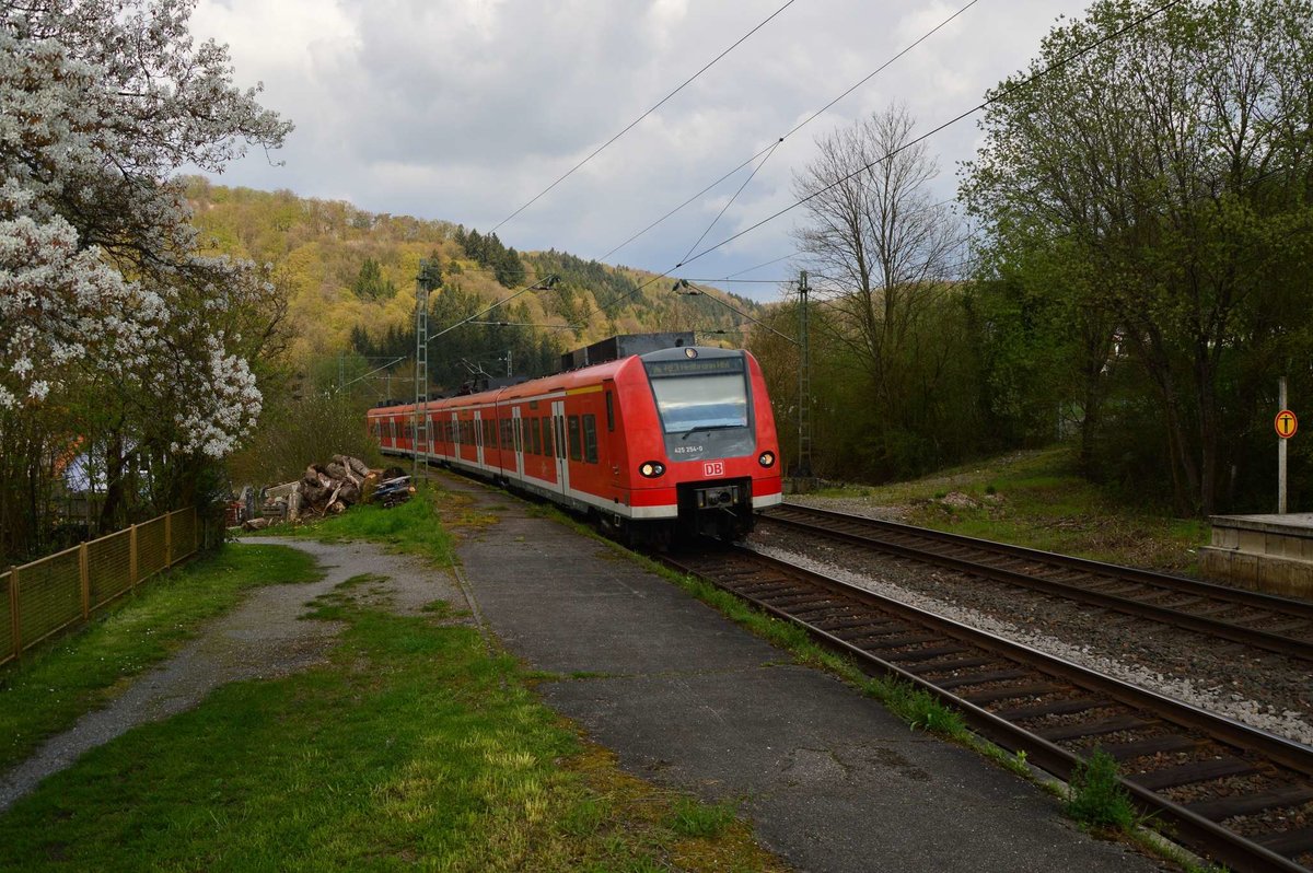 Durch Neckargerach kommt am heutigen Mittag der 425 254-0 als RE3 nach Heilbronn.13.4.2016