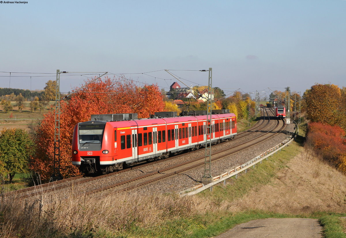 DB 425 307-6 ist bei herbstlicher Kulisse auf der eingleisigen Strecke von Laupheim Stadt als RS21 nach Laupheim West unterwegs. (04.10.2022) OMSIJakob LP
