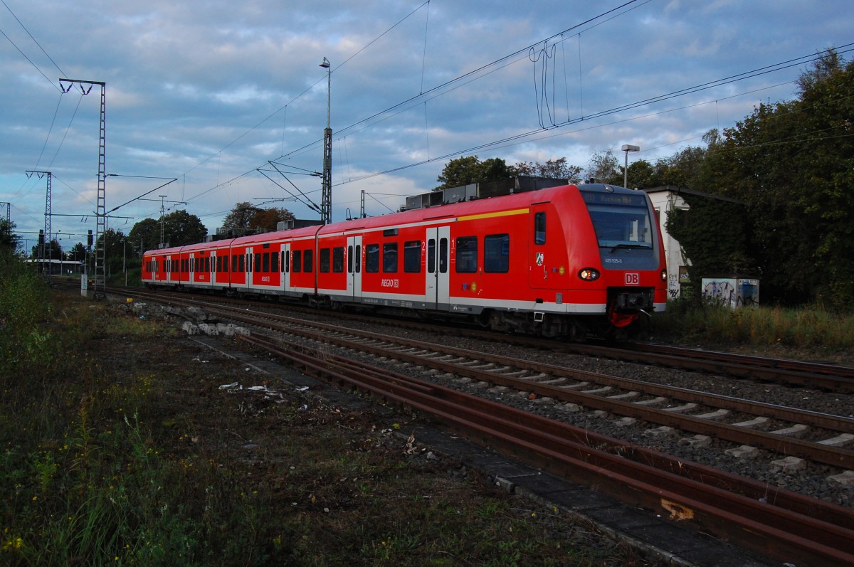 Als RE 6a kommt am Freitag den 8.1.2016 der 425 525-3 durch Allerheiligen nach Köln/Bonn Flughafen gedonnert, mit gut fünf Minuten Verspätung.