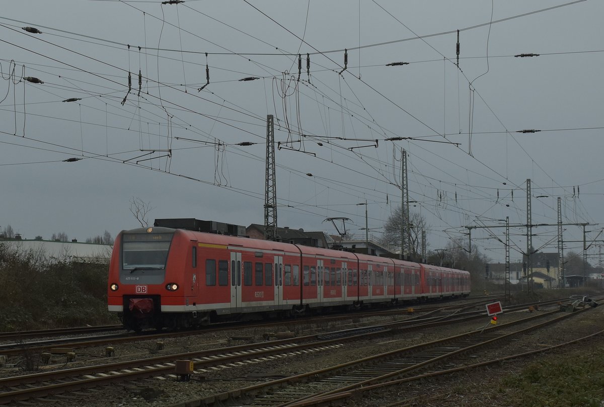 Eine vom 425 603-8 geführte RE8 verlässt Grevenbroich gen Mönchengladbach Hbf am Samstag den 7.1.2017. Rechts im Bild ist noch die Sperrtafel samt dem gefällten Signal zu sehen, das Dennis Fiedler(ID 987063) schon vor Tagen gezeigt hat. Der Trafozug hat es ja umgelegt. Andreas Strobel