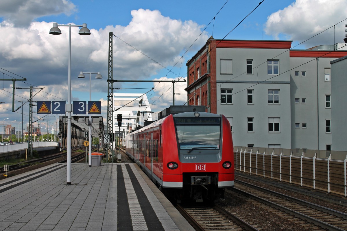 Am 24.05.2014 fuhr 425 619-4 in den Bahnhof Ludwigshafen (Rhein) Mitte ein, als sie als RB 44 nach Mainz Hbf unterwegs war.
