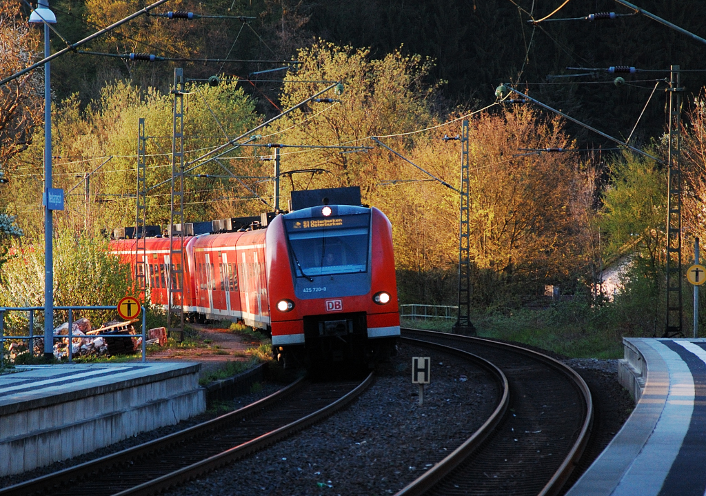 Auf dem weg Nach Osterburken ist dieser S1 Zug der vom 425 720-0 geführt in Neckargerach einfährt. Samstag 18.4.2015