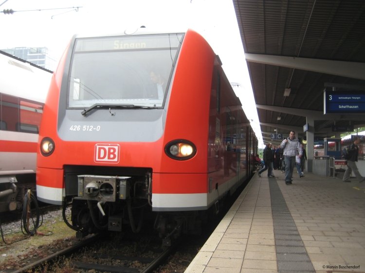 426 512-0 kam gerade mit ihrer RB aus Schaffhausen in Singen an und wird sich in wenigen Minuten auf die Rückfahrt dorthin aufmachen.