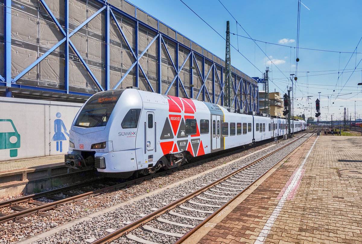 Die beiden SÜWEX-Triebzüge 429 116-7 und 429 111-8 werden am 20.4.2017 in Mannheim Hbf bereitgestellt.