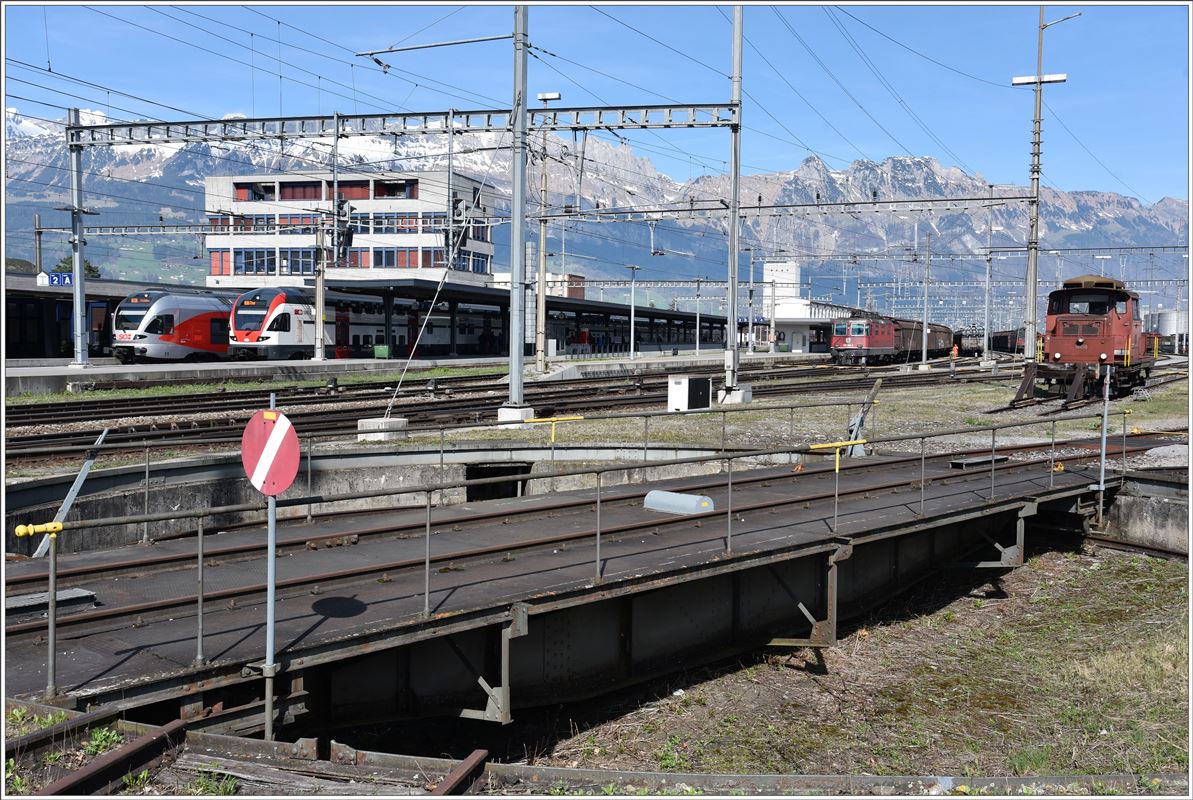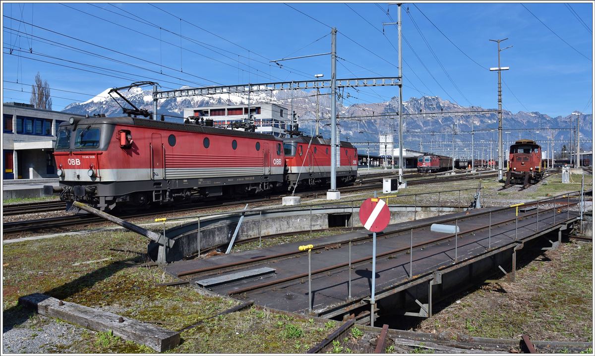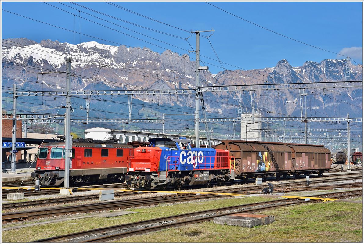 Re 430 352-5 ex Südostbahn, was auf den Seitenflächen noch schwach zu erkennen ist, in Buchs SG. Im Hintergrund der Gulme und Wildhauser Schafberg. (23.03.2017) Herbert Graf