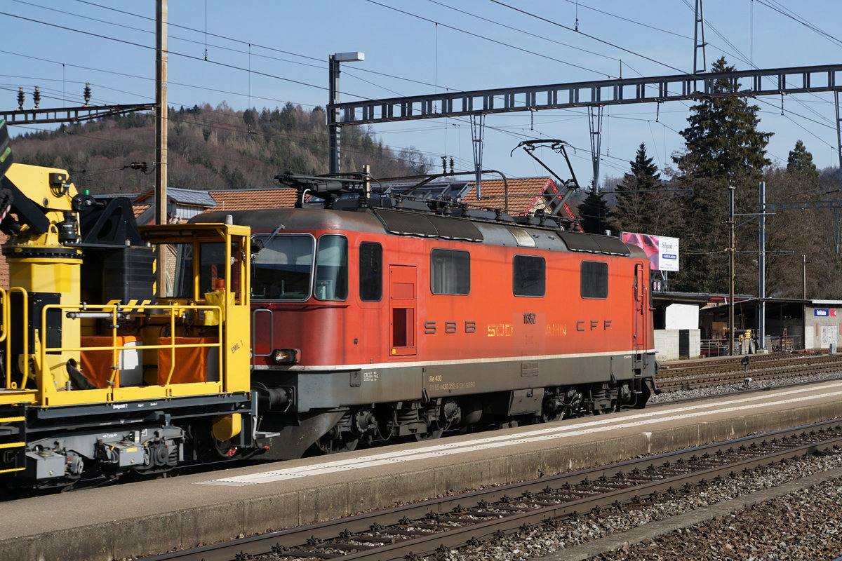 SBB CARGO Re 430 352-5 anlässlich der Bahnhofsdurchfahrt Burgdorf vom 19. Februar 2019.