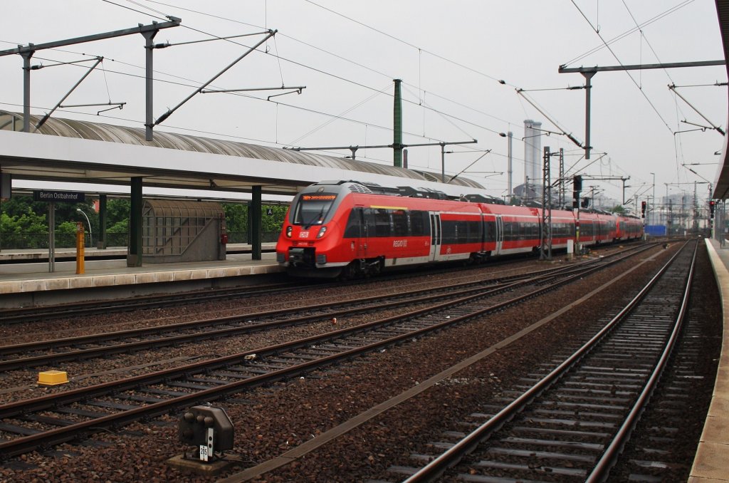 Hier 442 316-6 und 442 120-2 als RB14 (RB18917) von Nauen nach Berlin Schönefeld Flughafen, bei der Einfahrt am 18.5.2013 in Berlin Ostbahnhof. Alexander