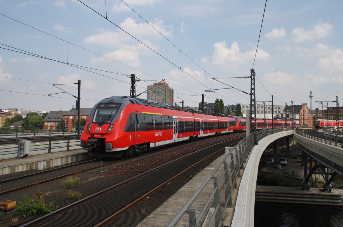 Hier 442 333-1 und 442 140-0 als RB14 (RB18921) von Nauen nach Berlin Schönefeld Flughafen, bei der Einfahrt am 28.6.2013 in Berlin Schönefeld Flughafen. Alexander