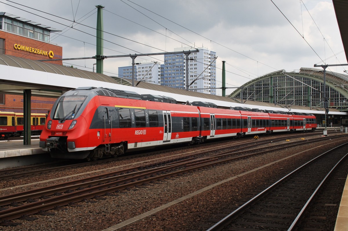 Hier 442 317-4 als RB18027 von Berlin Zoologischer Garten nach Berlin Ostbahnhof, bei der Einfahrt am 14.7.2014 in Berlin Ostbahnhof.