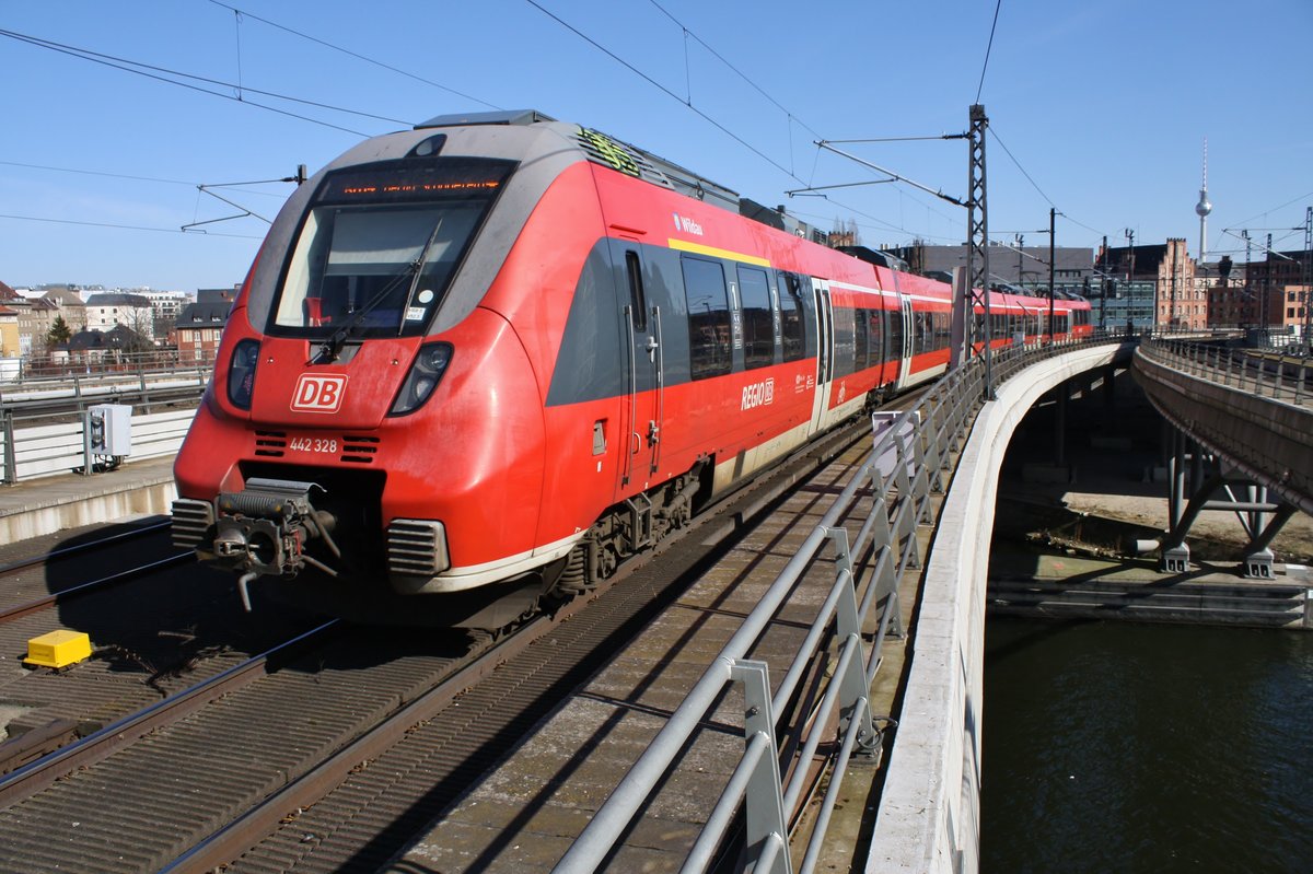 Treffen in Berlin Lichtenberg von: 442 328-1 "Wildau" als RB14 (RB93617) "Airport-Express" nach Berlin Schönefeld Flughafen, 112 114 mit RE3 (RE3346) von Berlin Hauptbahnhof (tief) nach Schwedt(Oder) und 632 025-2 als RB26 (RB5162) von Kostrzyn. (11.2.2017)