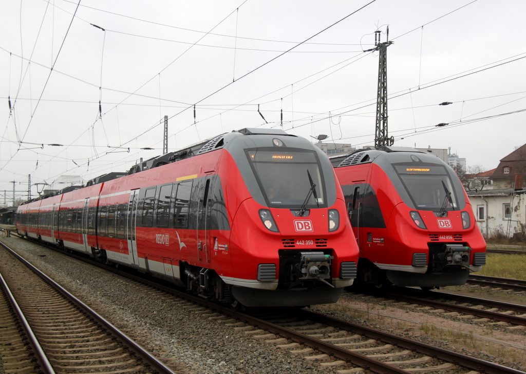 442 350-5 als S3(Warnemünde-Güstrow)bei der Ausfahrt im Rostocker Hbf neben an stand 442 356-2.28.11.2014