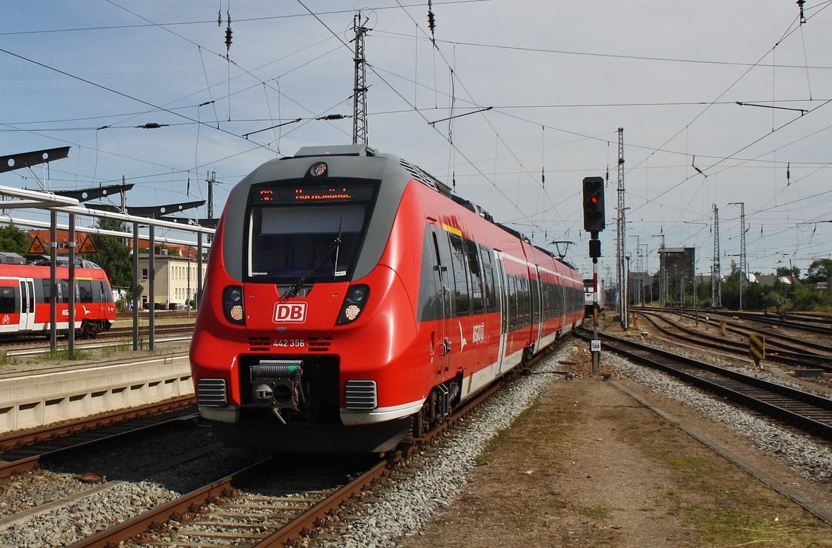 442 356-2 ist am 22.7.2016 als S2 von Güstrow nach Rostock Hauptbahnhof unterwegs. Soeben wird das Ziel der Fahrt erreicht.