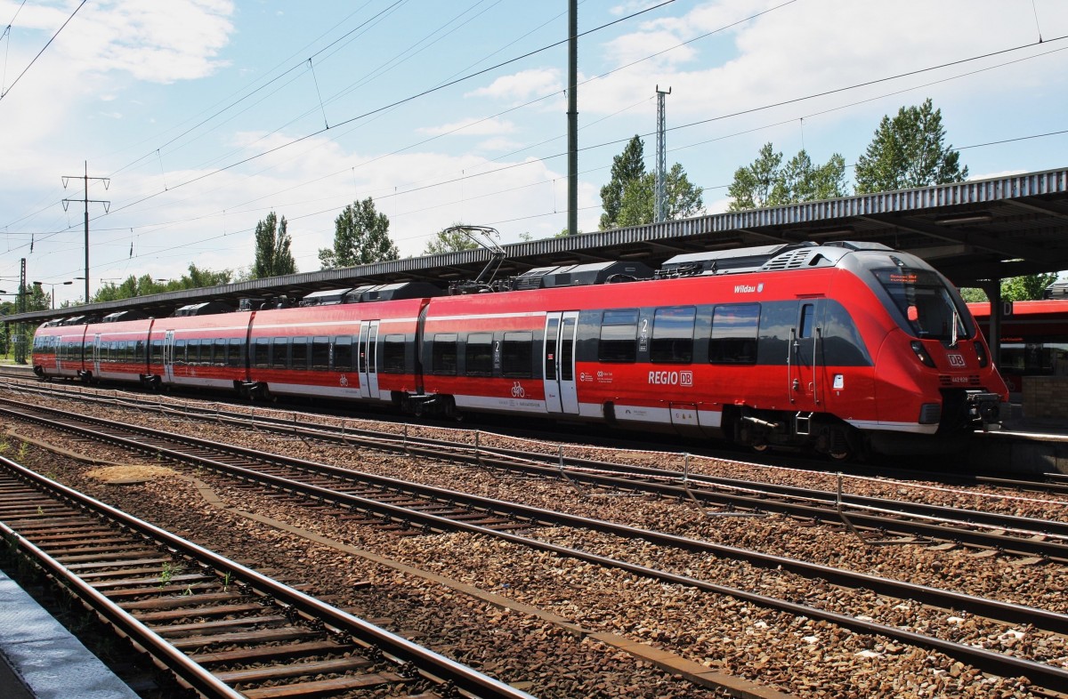 Hier 442 828-0 "Wildau" als RE7 (RE18721) "Airport-Express" von Berlin Schönefeld Flughafen nach Dessau Hbf., dieser Triebzug stand am 14.6.2014 in Berlin Schönefeld Flughafen. Alexander