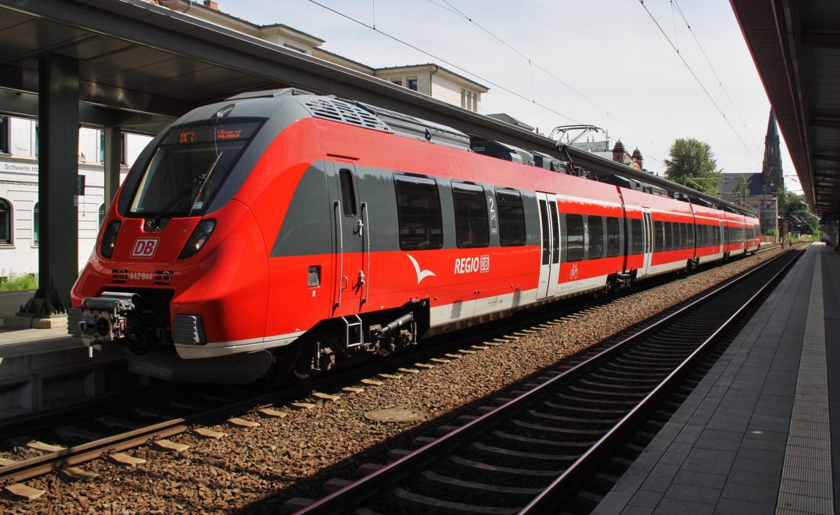 Hier links 442 844-7 als RE7 (RE4380) von Ludwigslust nach Wismar und rechts ein RE1 (RE4334) "Hanse-Express" von Schwerin Hbf. nach Hamburg Hbf. (Zuglok war 120 205-0), diese beiden Züge begegneten sich am 21.7.2014 in Schwerin Hbf. Alexander
