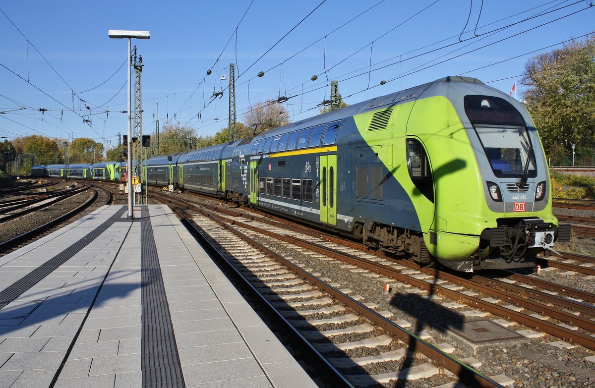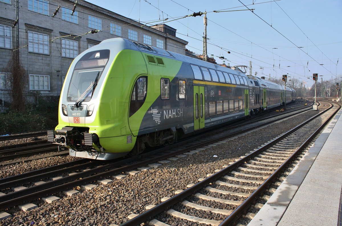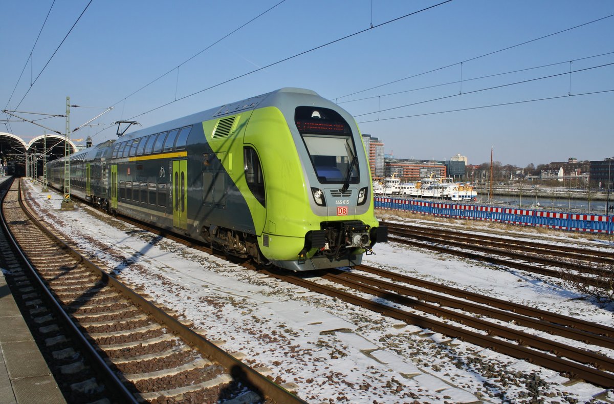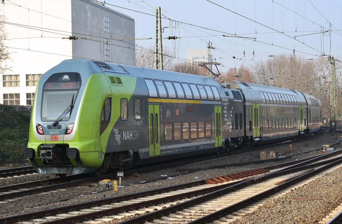 445 013-9 fährt am 10.2.2018 als RE7 (RE21066) von Hamburg Hauptbahnhof nach Flensburg zusammen mit 445 015-4 als RE7 (RE21116) von Hamburg Hauptbahnhof nach Kiel Hauptbahnhof aus dem Startbahnhof aus. Alexander