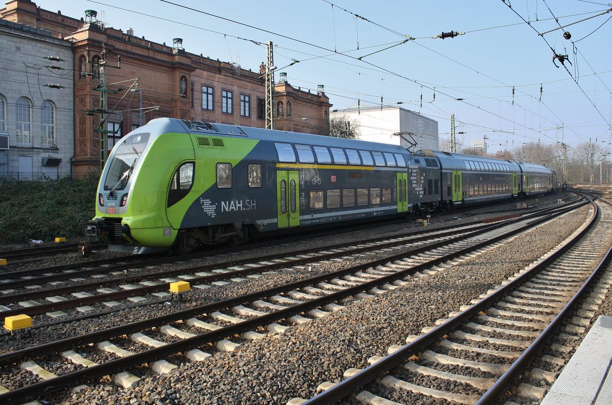 445 025-3 fährt am 3.3.2018 als RE7 (RE21066) nach Flensburg zusammen mit 445 015-4 als RE7 (RE21116) nach Kiel Hauptbahnhof aus Hamburg-Altona aus. Alexander